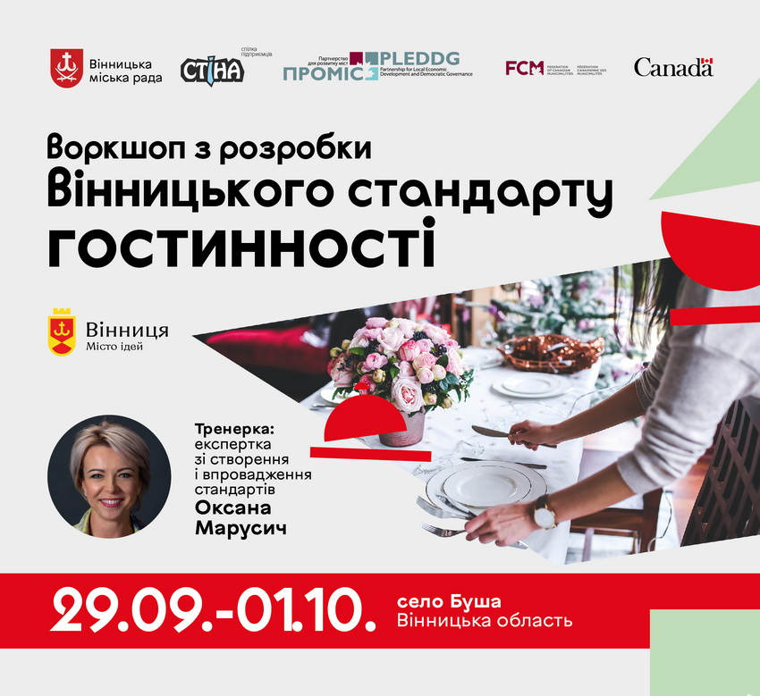 Впродовж 29 вересня – 1 жовтня відбудеться воркшоп з розробки Вінницького стандарту гостинності. До участі запрошують власників та топ-менеджерів закладів розміщення і харчування. Реєстрація на захід триває до 25 вересня включно.