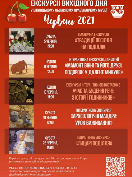 Вінницький обласний краєзнавчий музей продовжує впроваджувати проєкт під назвою «Екскурсії вихідного дня». Впродовж поточного місяця у рамках даного проєкту в музеї відбудеться 5 тематичних заходів.