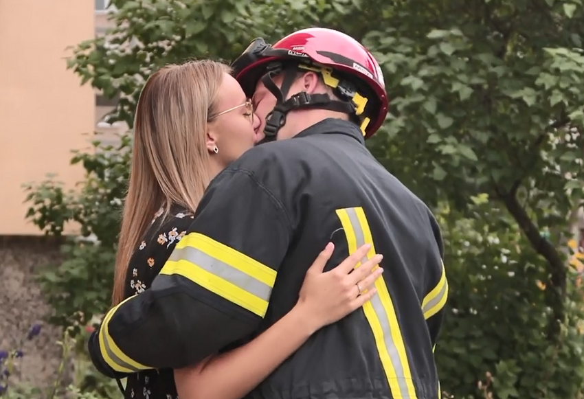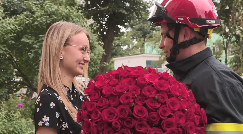 Під звук сирени аварійно-рятувального авто, вінницький надзвичайник Володимир Кононюк зробив пропозицію своїй коханій дівчині Вікторії - випускниці Львівського державного університету безпеки життєдіяльності.
