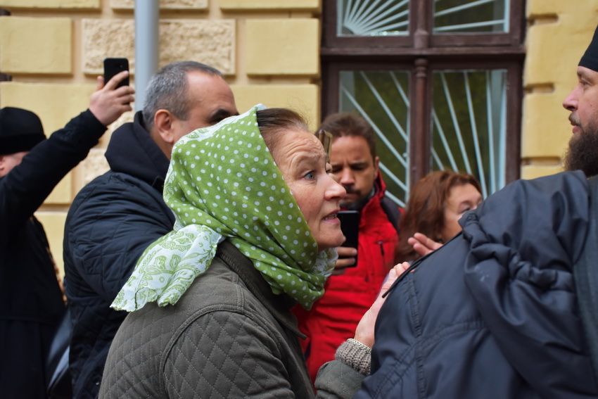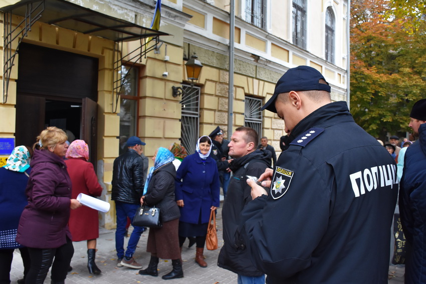 Біля будівлі Вінницького міського суду зібралися прихильники Російської православної церкви та Православної церкви України. Віряни ПЦУ підтримували Салецького та звинувачували поліцію в тому, що та стала на бік Російської церкви.