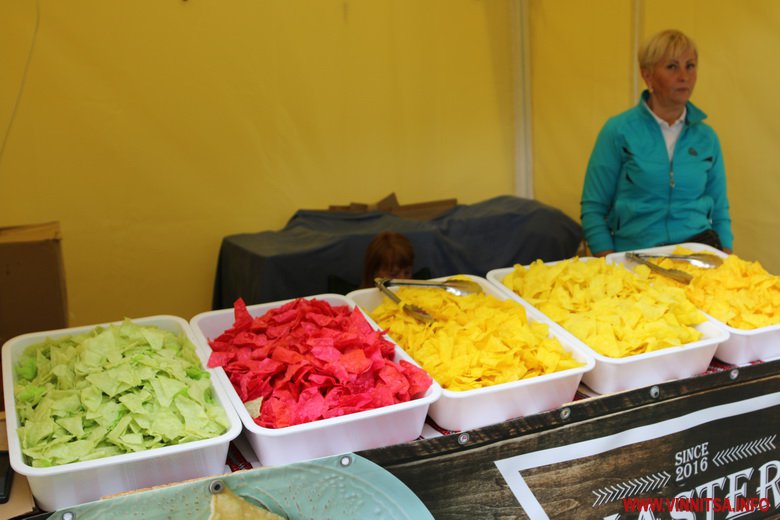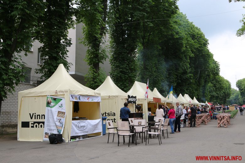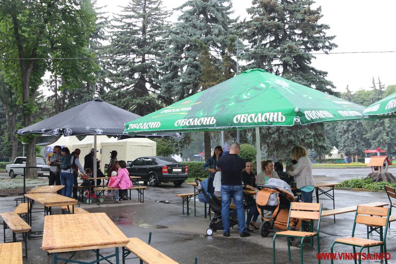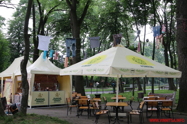 Другий день фестивалю їжі Vinnytsia Food Fest розпочався зі зливи. Цього разу локації розташувалися одразу при вході в парк зі сторони Вежі, біля Літнього театру, та алеях, які поруч. Є зони для відпочинку з м’якими кріслами, фотозони, столики.