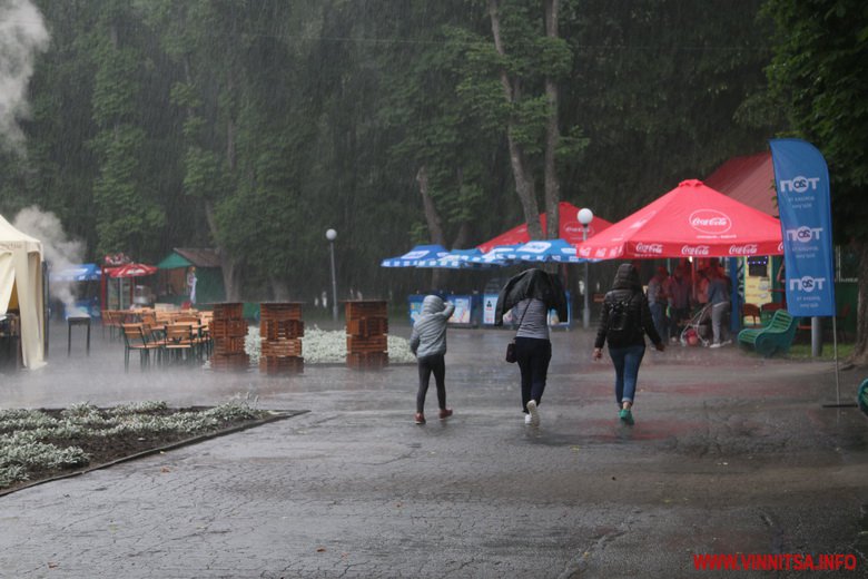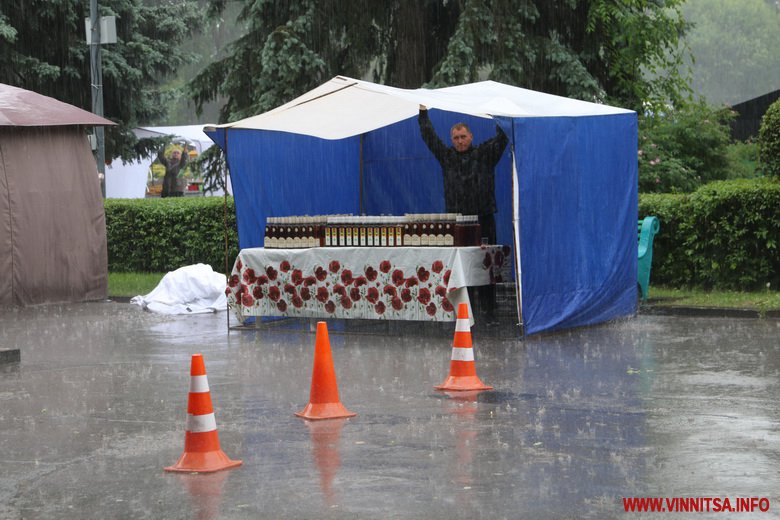 Ближче до 12 години в Центральному парку розпочалася злива. Відвідувачі фестивалю ховалися під великі навіси, зонти. Кухарі ж швидко прибирали страви з прилавків та вогню. На деяких локаціях навіть людей безкоштовно пригощали наливками.