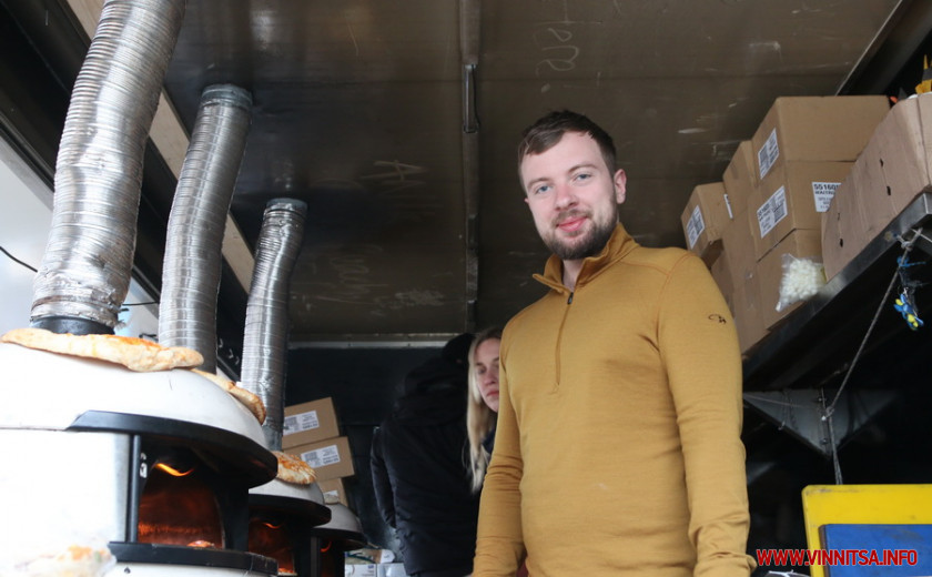 Волонтер Адам прилетів до України з Австралії аби підтримати українців. У перевізній кухні він готує піцу і безкоштовно роздає людям.
