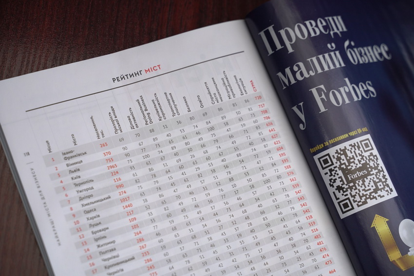 Вінниця посіла другу позицію в рейтингу кращих міст для ведення бізнесу за версією видання Forbes. Розрив з лідером ТОПу склав лише 3 бали. Відтак, Вінниця, за висновками експертів, набрала 717 балів, а лідер рейтингу, Івано-Франківськ, – 720.