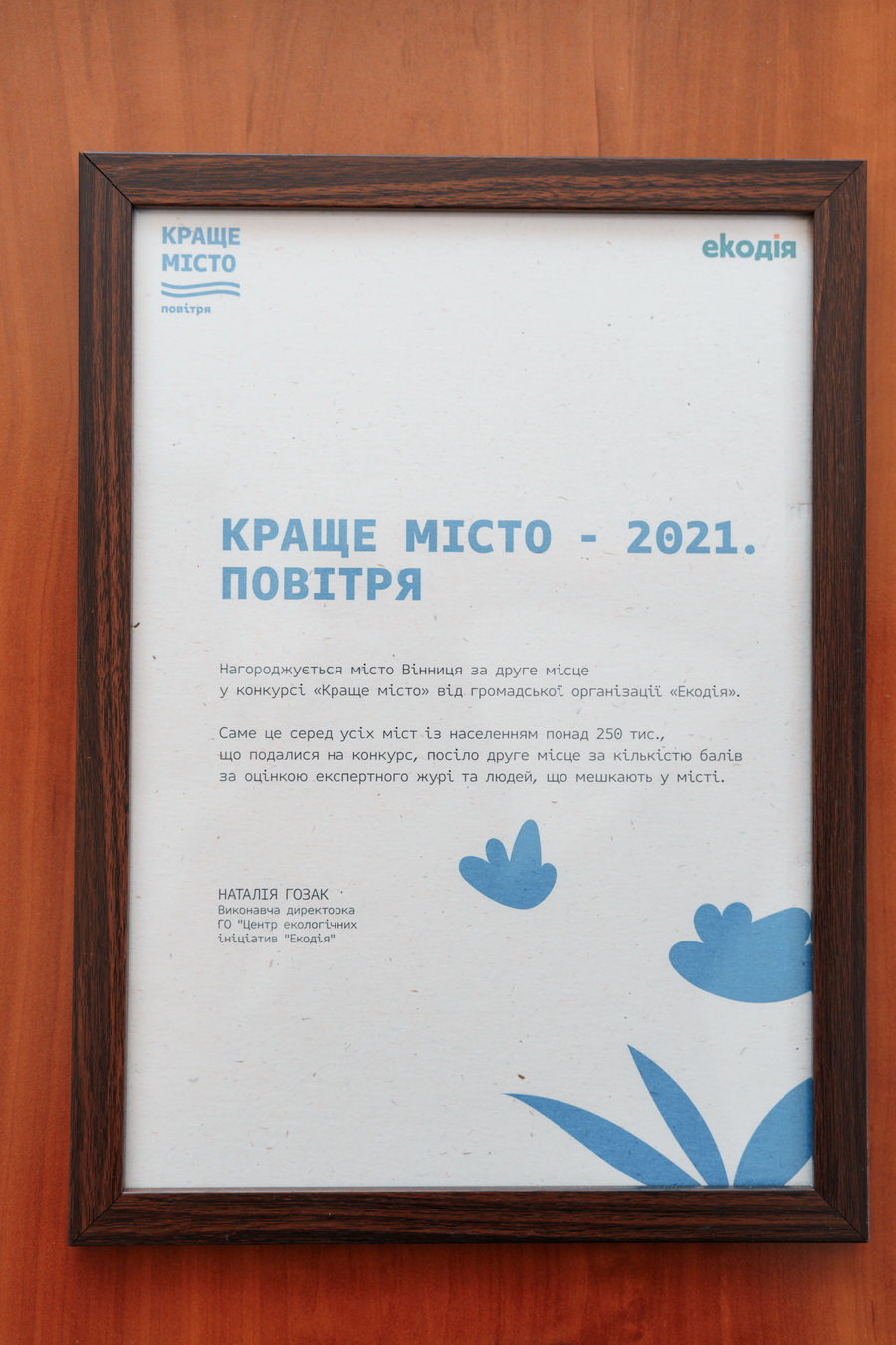 «Ми подали заявку від Вінниці. Організатори провели опитування мешканців та мешканок міст-учасників конкурсу. Серед іншого, у людей цікавились чи достатньо зелених зон, яка ситуація з моніторингом якості повітря», – каже начальниця відділу з охорони довкілля та моніторингу якості атмосферного повітря управління інвестицій департаменту економіки і інвестицій міської ради Світлана Юзвак.