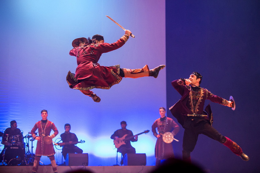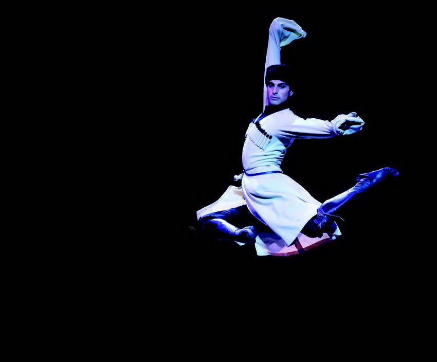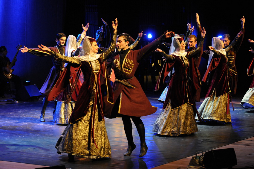 У пристрасних танцях колективу чарівним чином поєднуються сміливість і ніжність, складні стрибки і відточені па, багатовікова історія грузинського народу і благородство національного характеру.