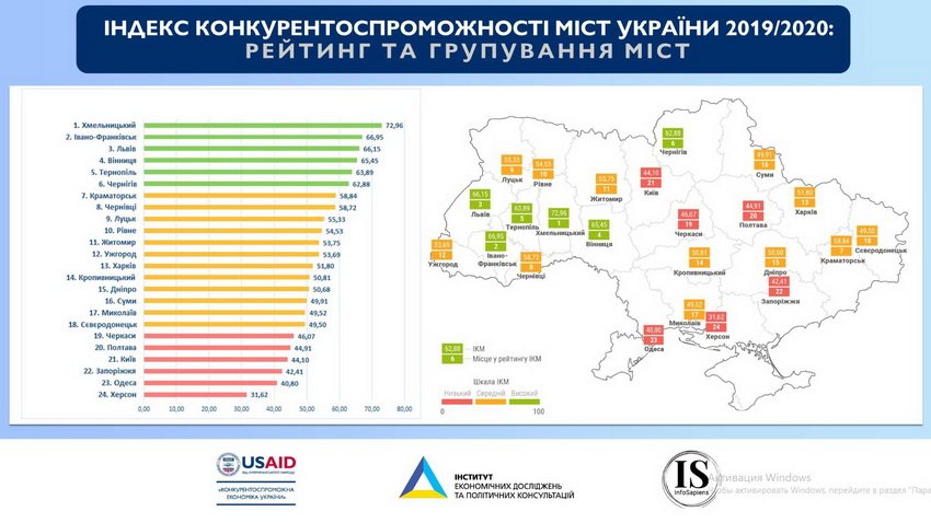 Індекс Вінниці становить 65,45. Більші показники мають лише три міста: Львів (66,15), Івано-Франківськ (66,95) та Хмельницький (72,96). Загалом, високий індекс конкурентоспроможності отримали шість міст.