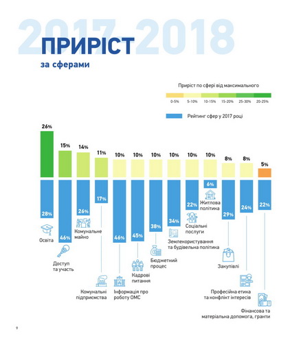 Загальний рівень прозорості у розрізі 100 міст підвищився на 12% – від 30% у 2017 році до 41% у 2018. При цьому, 27 міст України отримали більше 50 балів зі 100 у 2018 році, у порівнянні з 6 містами у 2017 році. Лідер рейтингу місто Дрогобич за рік підвищило кількість балів від 46 до 85, стрибнувши з 10 місця на перше.