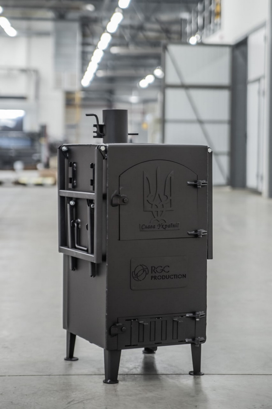 RGC Production підійшла до випуску буржуйок так само технологічно, як підходить до виробництва суперсучасних ШГРП. Розкрій та гнуття матеріалу виконується за допомогою високоточного новітнього обладнання. Корпуси пічок зварюються роботизованими зварювальними комплексами та фарбуються температуростійкою фарбою. Кожен виріб посилений ребрами жорсткості, щоб витримувати температурні навантаження.