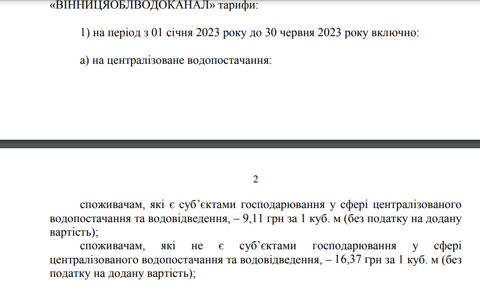 Зараз, з 1 січня 2022 року, тариф КП «Вінницяоблводоканал» для населення складає: