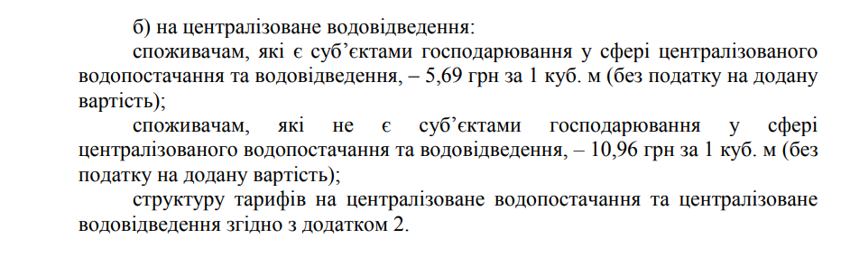 на централізоване водовідведення – 10,96 грн за 1 куб. м (без ПДВ)
