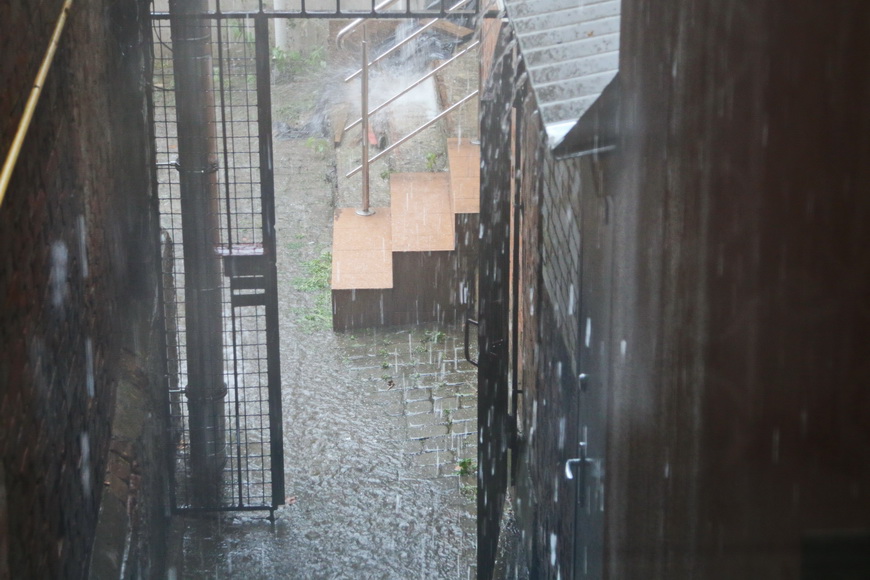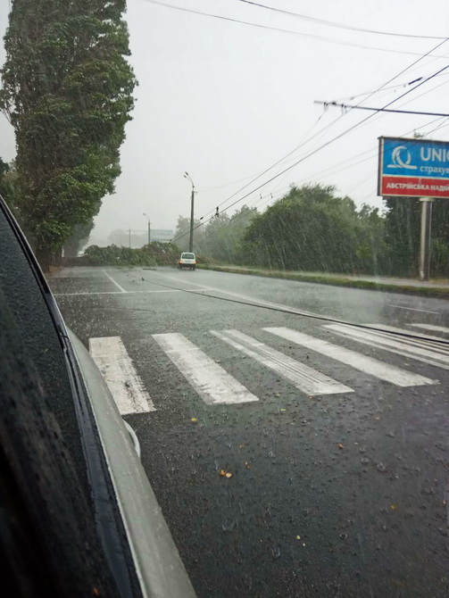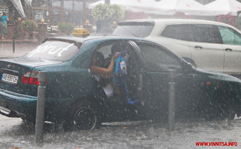 В обід 25 серпня у Вінниці пройшла потужна злива. Рясний дощ супроводжувався градом і рвучким вітром.