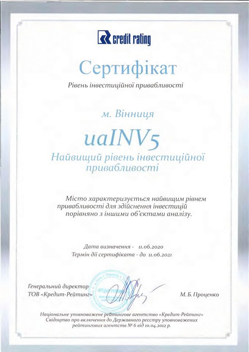 Вінниця отримала найвищий рейтинг інвестиційної привабливості «uaINV5», про що повідомили в рейтинговому агентстві Кредит-Рейтинг.