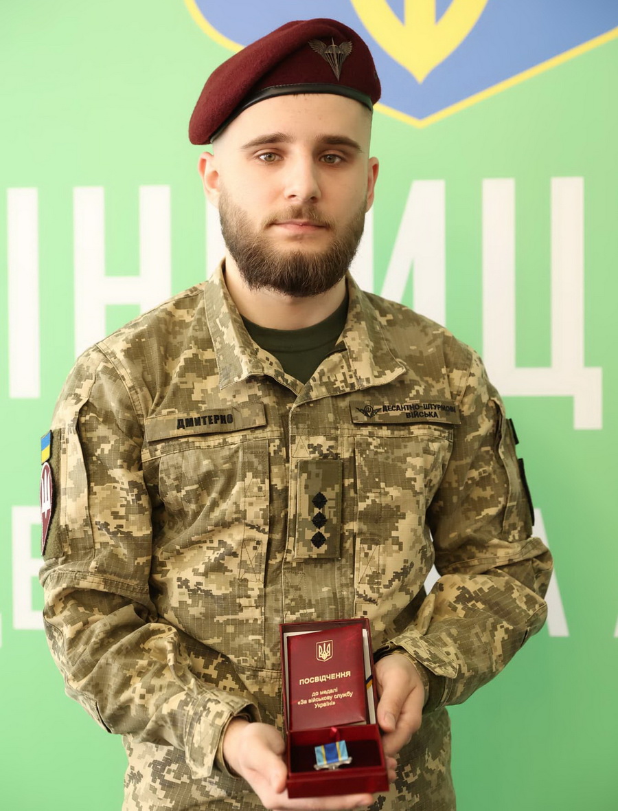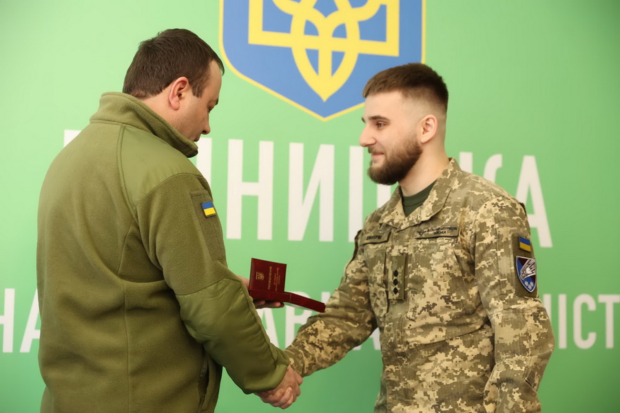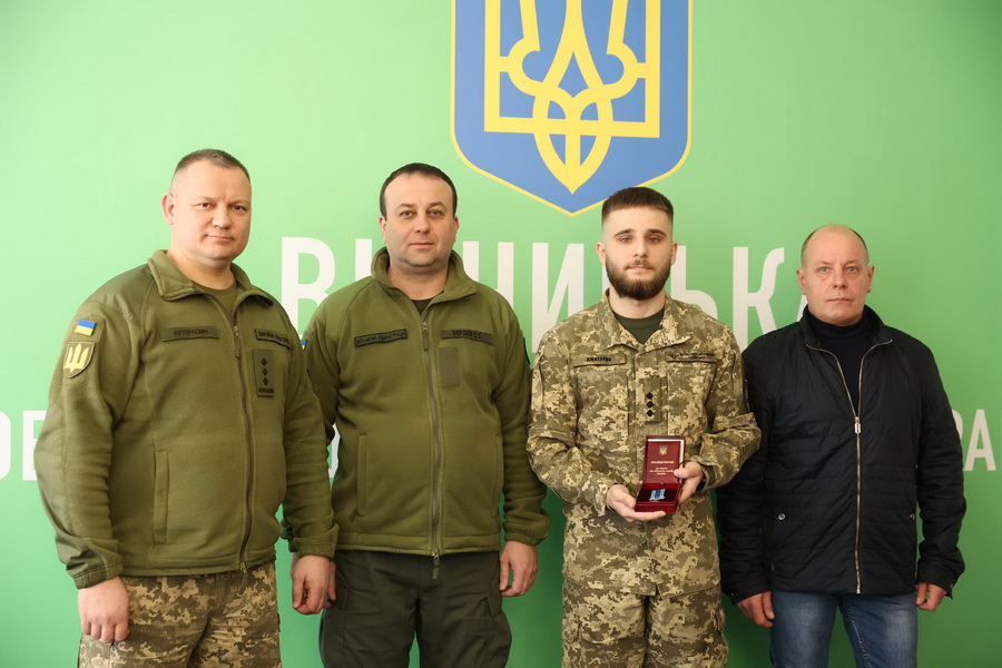Начальник Вінницької ОВА Сергій Борзов вручив державну відзнаку - медаль «За військову службу Україні» старшому лейтенанту Анатолію Дмитерку.