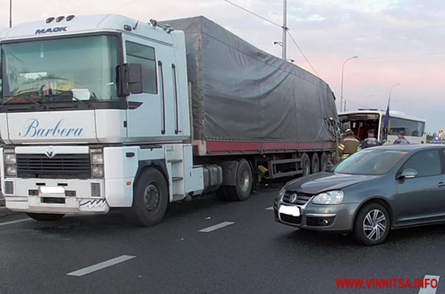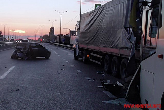 «За попередньою інформацією, водій легковика марки «Volkswagen Polo» при виїзді з другорядної дороги допустив зіткнення з автобусом «БАЗ». Після зіткнення автобус в’їхав у напівпричіп вантажівки «Renault», що стояла на узбіччі. Легковик та автобус рухалися у напрямку Києва.
