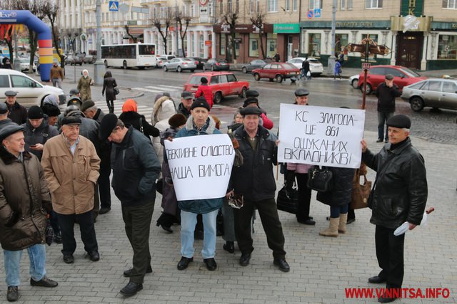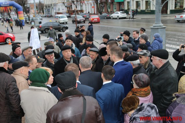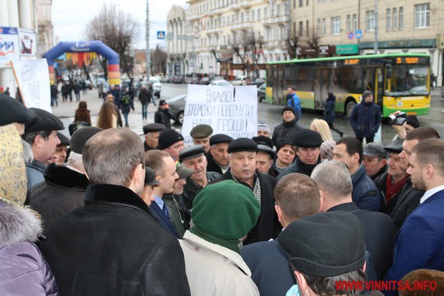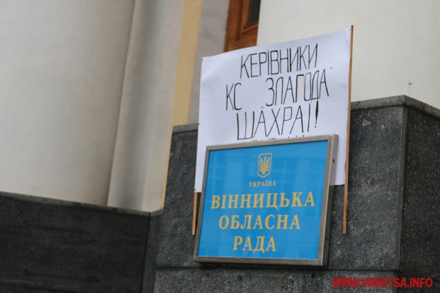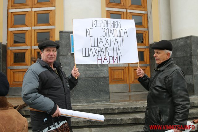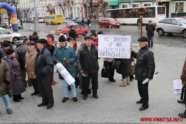 11 лютого біля приміщення Вінницької ОДА зібралося кілька десятків ошуканих вкладників кредитної спілки «Злагода». Вінничани вимагали, щоб влада допомогла повернути їм гроші.