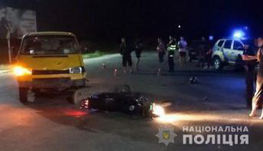 Близько 21.40 год. 44-річна водійка мікроавтобуса Volkswagen Transporter під час повороту зіткнулась з мотоциклістом, який рухався у зустрічному напрямку. Водії транспортних засобів доставлені у лікарню. Водії транспортних засобів освідувані. Вони тверезі.