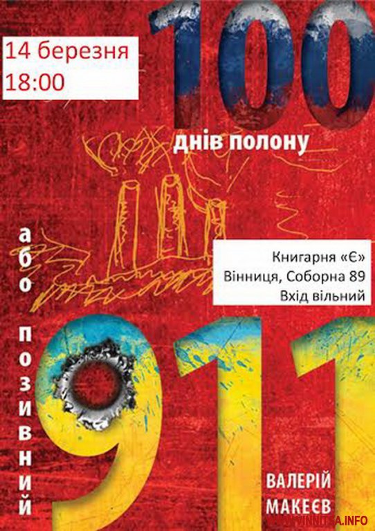 14 березня у Вінниці в книгарні «Є» відбудеться презентація книжки Валерія Макеєва «100 днів полону, або позивний 911».