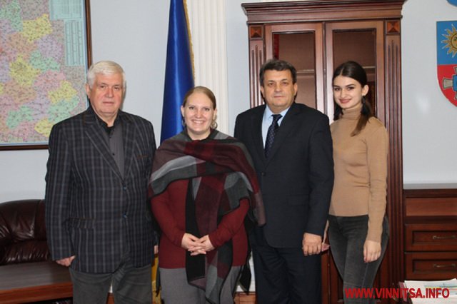 Голова обласної Ради, голова Вінницької обласної Асоціації органів місцевого самоврядування Анатолій Олійник привітав Ешлі з початком роботи та побажав плідної співпраці, адже пріоритетом у діяльності Асоціації є саме міжнародні проекти та продуктивна співпраця.