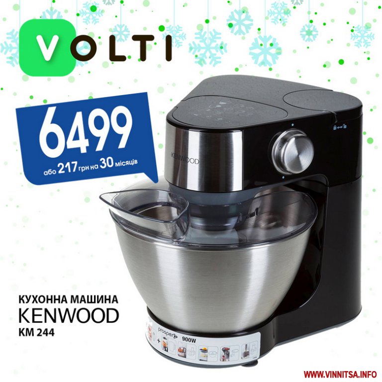 - Надійна, зручна і вишукана кухонна машина Kenwood KM 244 для ваших кулінарних шедеврів – за 6 499 гривень. Доступна також розстрочка – всього 217 гривень на 30 місяців.