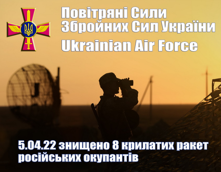 Протягом 5 квітня підрозділами зенітних ракетних військ Повітряних Сил збито вісім крилатих ракет», - йдеться у повідомленні.