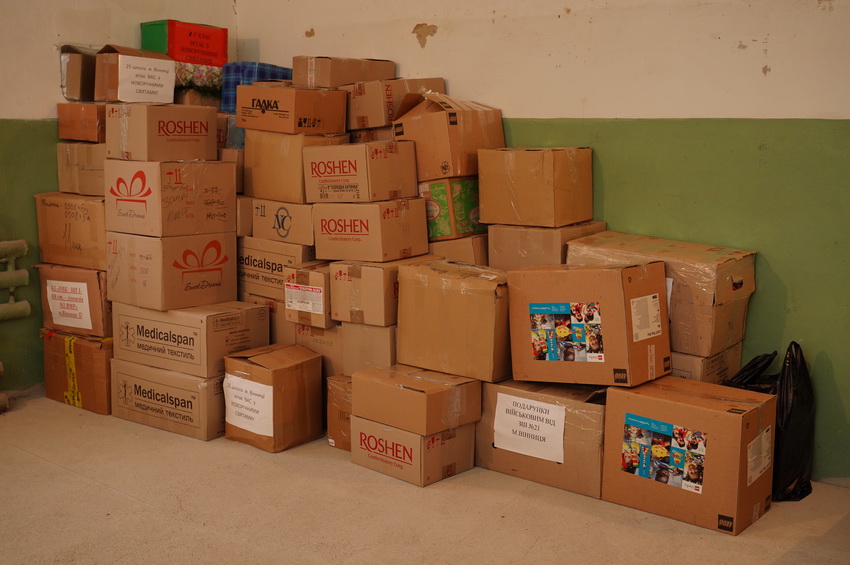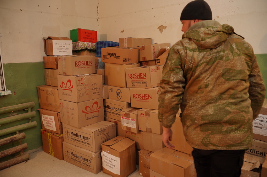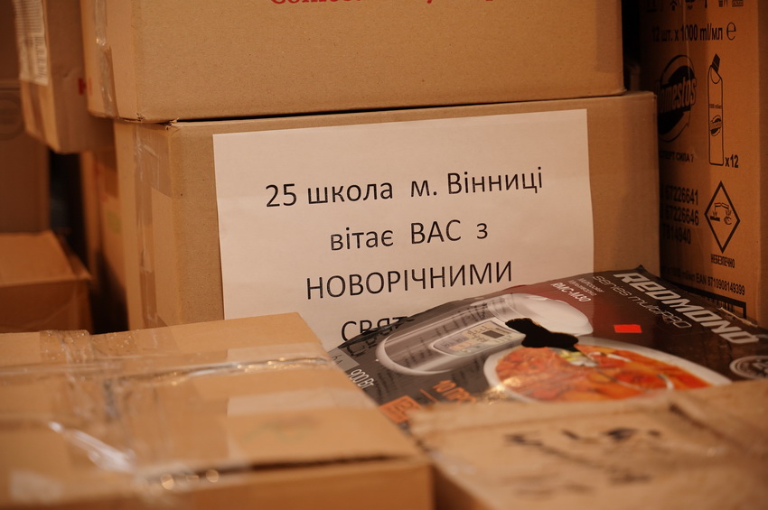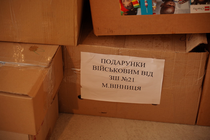 Щороку школярі з Вінниці напередодні новорічно-різдвяних свят влаштовують збір допомоги для бійців на Донбасі. Цього року учні також підготували для бійців вітальні листівки та малюнки, а також різні гостинці: каву, чай, печиво, мандарини, тощо.