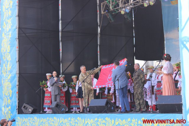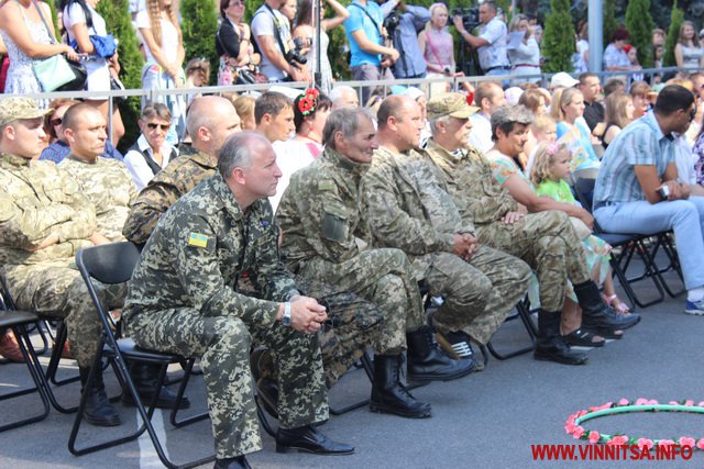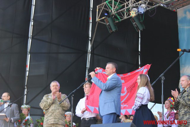 «Нещодавно ми повернулися зі Сходу і привезли вітання від хлопців, які в цю хвилину стоять зі зброєю руках на захисті суверенітету і незалежності нашої держави. Завдяки їм відбувається це чудове свято. Тому вінницький прапор, який пройшов з нами вздовж всієї лінії фронту, ми хотіли б передати особисто Сергію Анатолійовичу і запевнити та передати від хлопців, що ми вистоїмо, а вони відчувають нашу допомогу і турботу про захисників», - зауважив керівник обласного громадського формування з охорони громадського порядку та державного кордону «Самооборона Майдану» Анатолій Книжник.