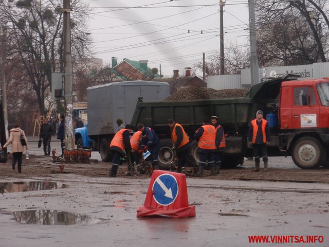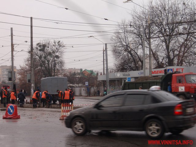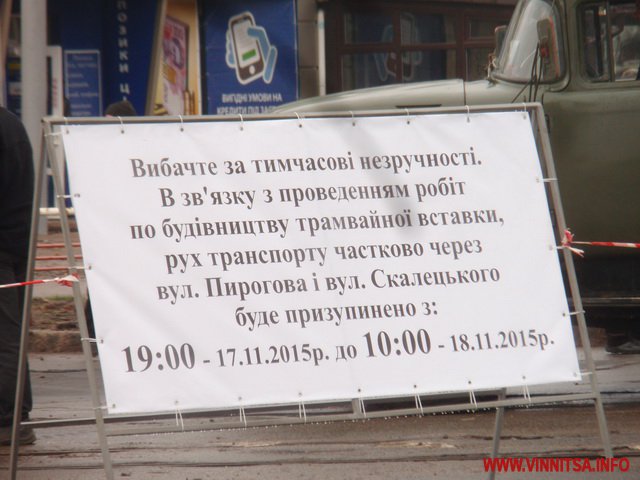 18 листопада зранку в районі ринку «Урожай», де проводяться ремонтні роботи по встановлені нової трамвайної колії вінничани довго стояли на зупинках через переповненість громадського транспорту, автомобілісти, теж вишикувались у черзі.