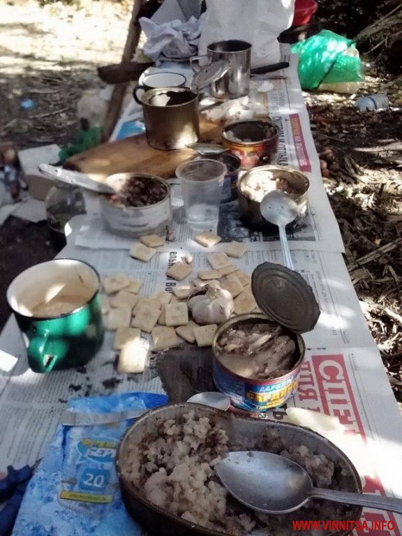 - Їжі було достатньо. Як приїхали, то в посадці і крупи і макарони, консерви, печиво, окрім того ми з собою взяли. Був у нас тиждень рибний: «біла риба» і «червона риба», (посміхається – ред.) – сардина в маслі або кілька в томаті. Була каша перлова. Хоч вона нам в Тютьках остогидла, але їсти можна…але без води було дійсно важко, пили і фільтрували усе, якось пройшов дощик і поробив калюжки нам на радість.