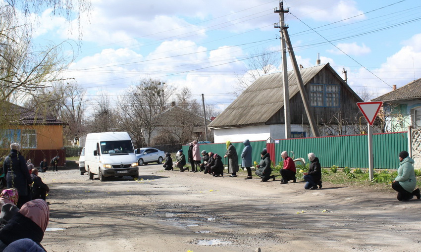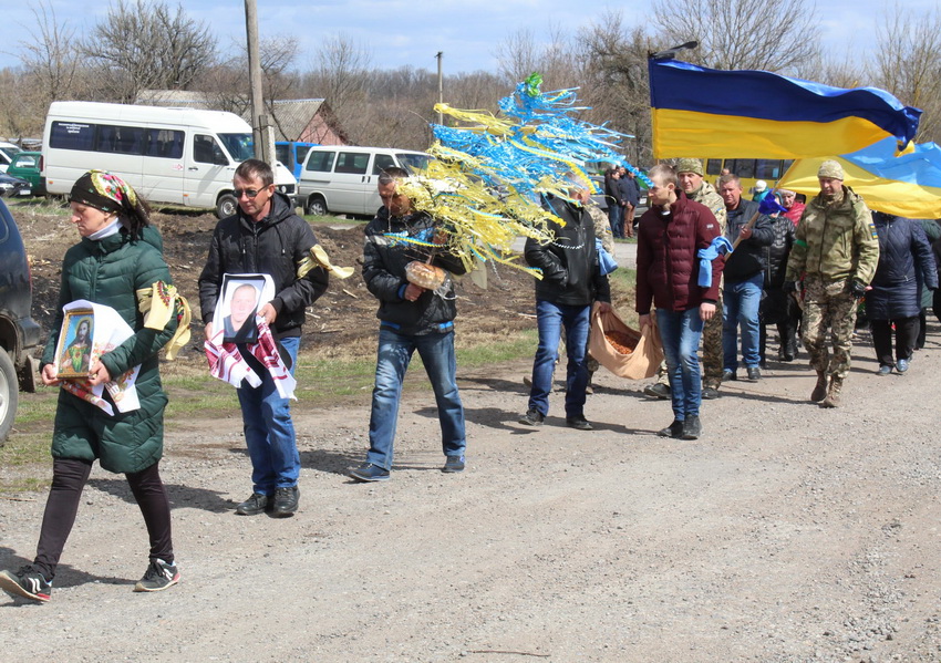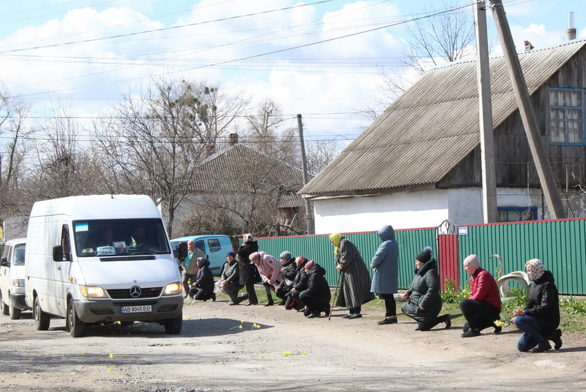 В Іллінецькій громаді на Вінниччині 12 квітня, жителі села Бабин живим коридором, стоячи на колінах, з квітами та сльозами на очах зустрічали тіло свого земляка, воїна-захисника України Михайла Василюка.