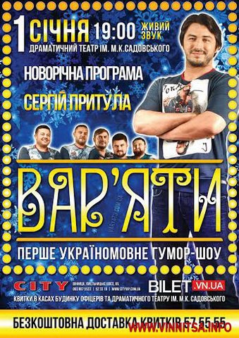 1 січня о 19.00 у театрі імені Садовського Сергій Притула і «Вар’яти Шоу» будуть чекати всю Вінницю!