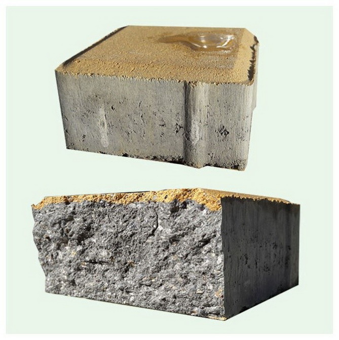 Досить часто на бетонній плитці спостерігаються білі сольові відкладення-висоли. Вони можуть бути набруківці або з’являтися через деякий час після монтажу ( зазвичай навесні).
