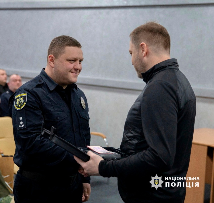 У Вінниці вибухотехнік та підполковник поліції вибухотехніків, який повертав безпеку і мирне життя жителям Бучі, Гостомеля, Бородянки, Макарова, Ірпеня Ігор Підлісний отримав нагородну зброю від Міністра внутрішніх справ.