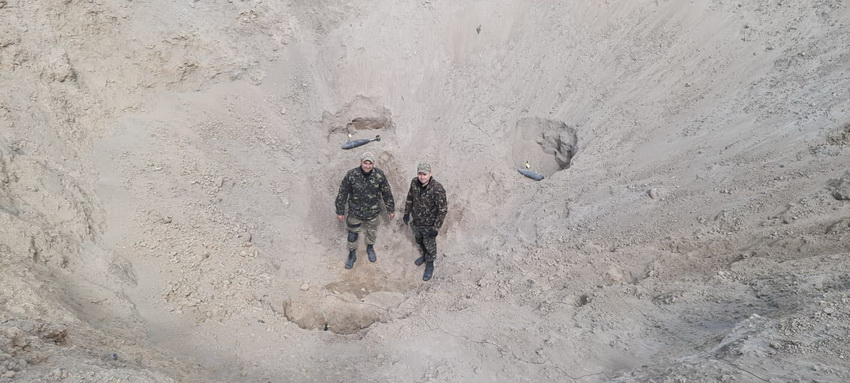 На фото він показав протитанкові керовані ракети, 30 мм постріли, якими стріляють із БТРів та вирву після підривів вибухонебезпечних предметів.