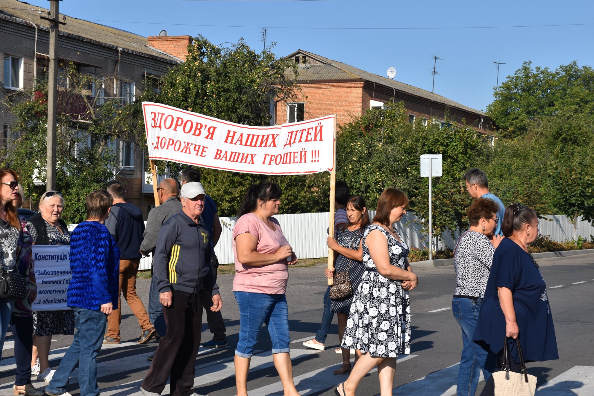 «На одному переході, де ми проводимо пікет, знаходиться спиртовий завод, через який ми тут і знаходимся. Два роки все місто на навколишня територія потерпає від жахливого смороду. У 300 метрах від житлової зони на 40 гектарах землі гниє сотня тисяч відходів. Ми робили власне дослідження тієї борди. І в ній виявили хімічні речовини, які входили до хімічної зброї. От і думайте, чим ми дихаємо», - розповідав Вінниця.info місцевий мешканець Андрій Терехов.