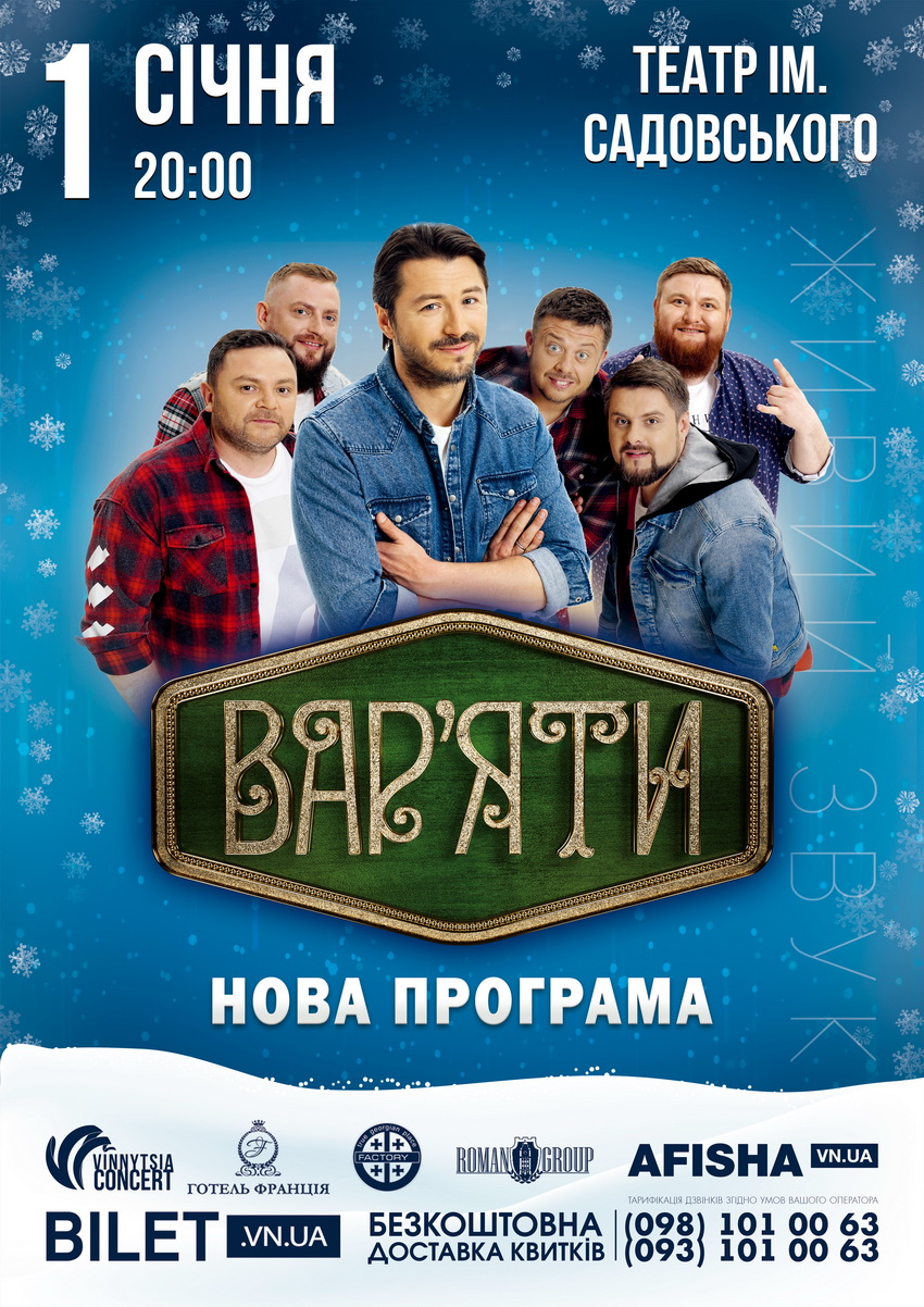 1 січня о 20.00 у театрі імені Садовського Сергій Притула і «ВАР’ЯТИ-ШОУ»будуть чекати всю Вінницю!