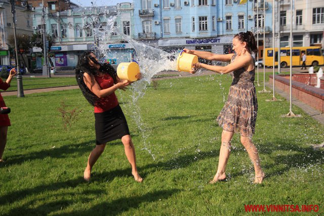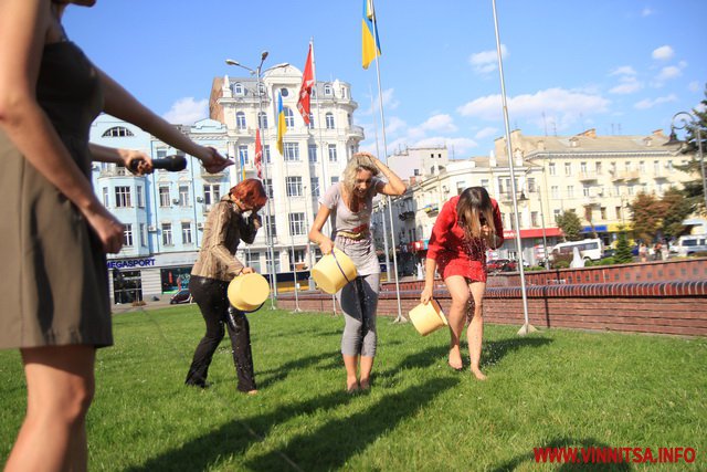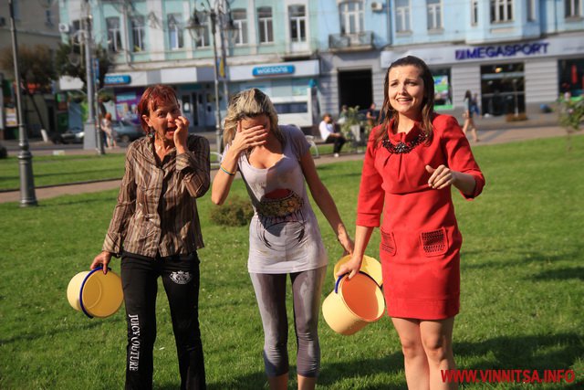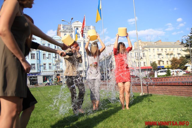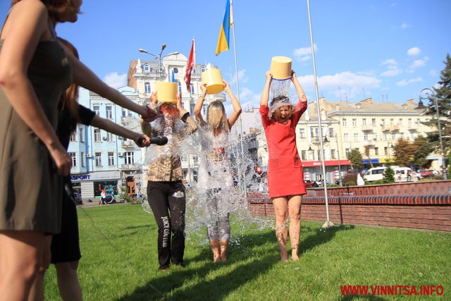 Колективне обливання холодною водою влаштували дівчата-журналістки вінницького телеканалу "ВІТА" у рамках благодійної акції «IceBucketChallenge», учасники якої перераховують кошти для наших бійців в АТО.