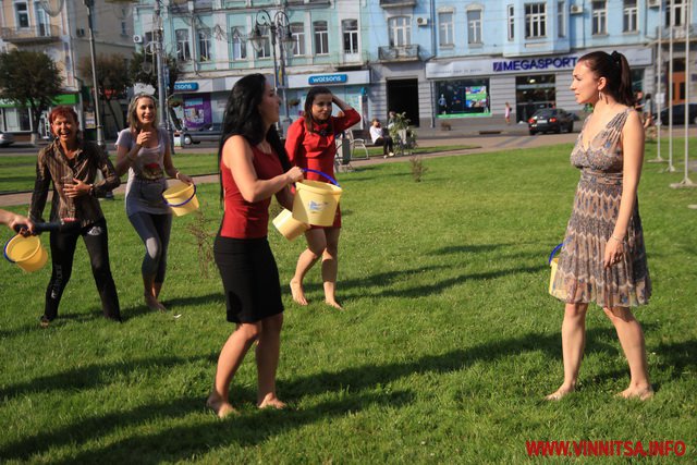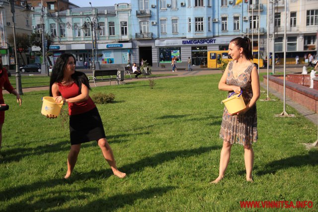 Обливши себе водою з фонтану дівчата передали естафету акції колегам з телеканалів ВДТ-6 (телекомпанія "Вінтера"), "Еверест" та радіокомпанії "Місто над Бугом".