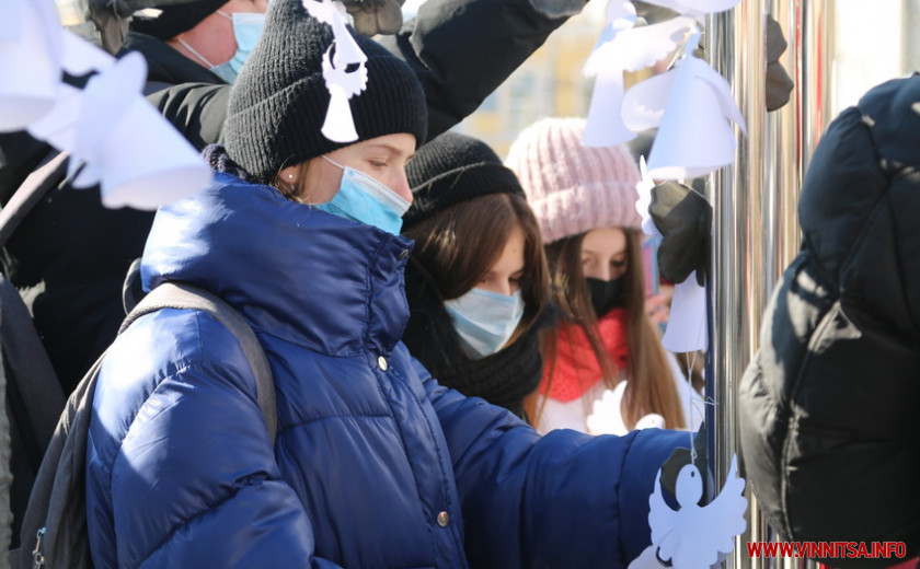 19 лютого на Майдані Небесної Сотні у Вінниці відбулася тиха акція «Ангели пам’яті». До ініціативи могли долучитися всі бажаючі. Учні вінницьких навчальних закладів та старші вінничани вшанували пам’ять Героїв Небесної Сотні хвилиною мовчання, запалили лампадки, принесли квіти та розвісили паперових янголів на Дереві Свободи.