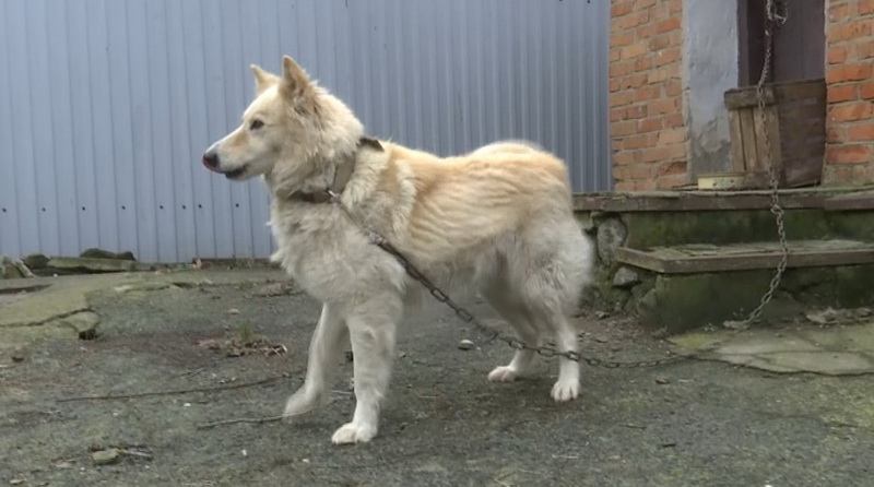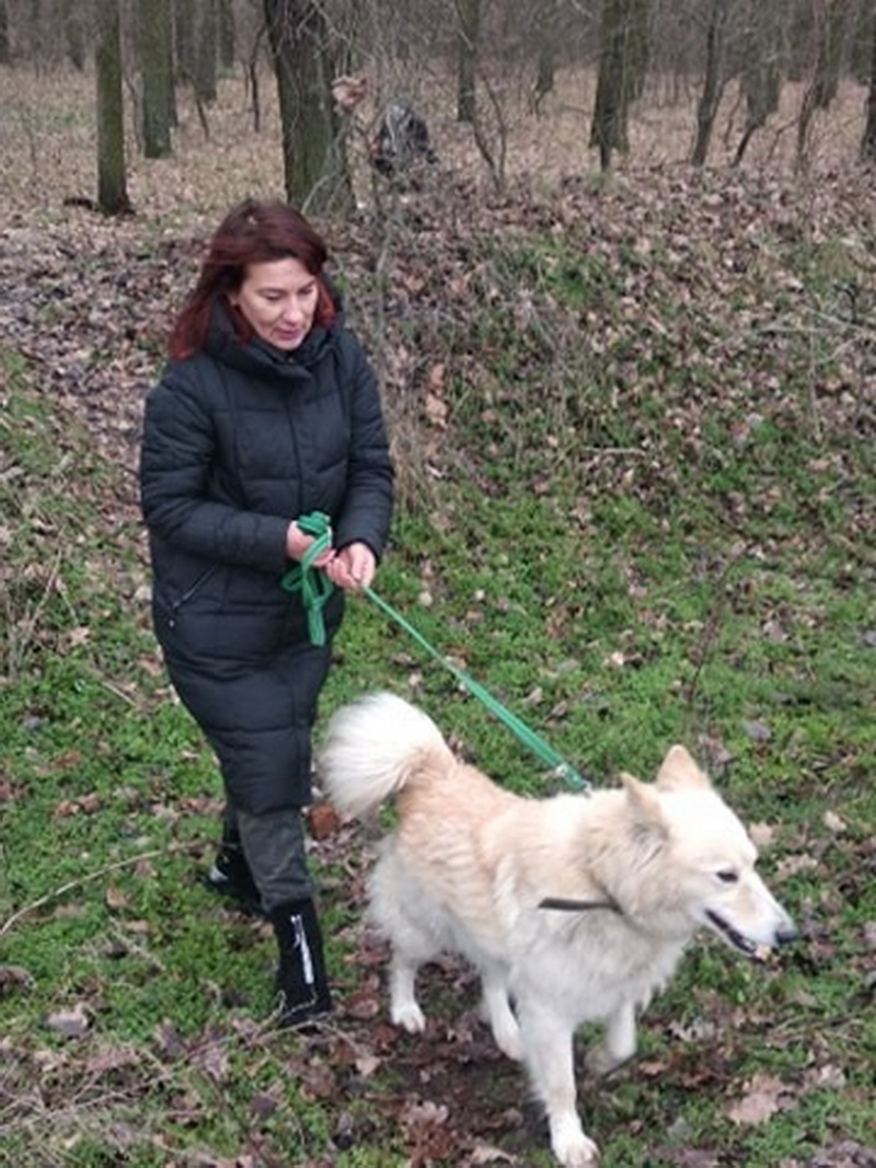 Щоб пес не помер на морозі від голоду Олена Гросу забрала його до себе. Каже, собака лагідна, грайлива та чуйна. Імовірно, попередній власник був чоловік, тому що собака ластиться до них. Не розуміє, як могли викинути розумного пса.