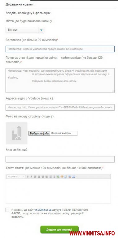 Особливим цинізмом при розміщенні чорнухи на сайті "20 хвилин" є примітка над кнопкою "Додати новину", де пишеться наступне: "Я згоден, що сайт vn.20minut.ua друкує ТІЛЬКИ ПЕРЕВІРЕНІ ФАКТИ, і якщо моя стаття не відповідає цьому, редакція її видалить."