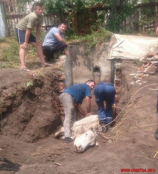 26 липня о 9:55 до Служби порятунку «101» нaдійшло повідомлення про те, що в смт Чечельник нa одній із центрaльних вулиць у кaнaлізaційну яму впaлa коровa.