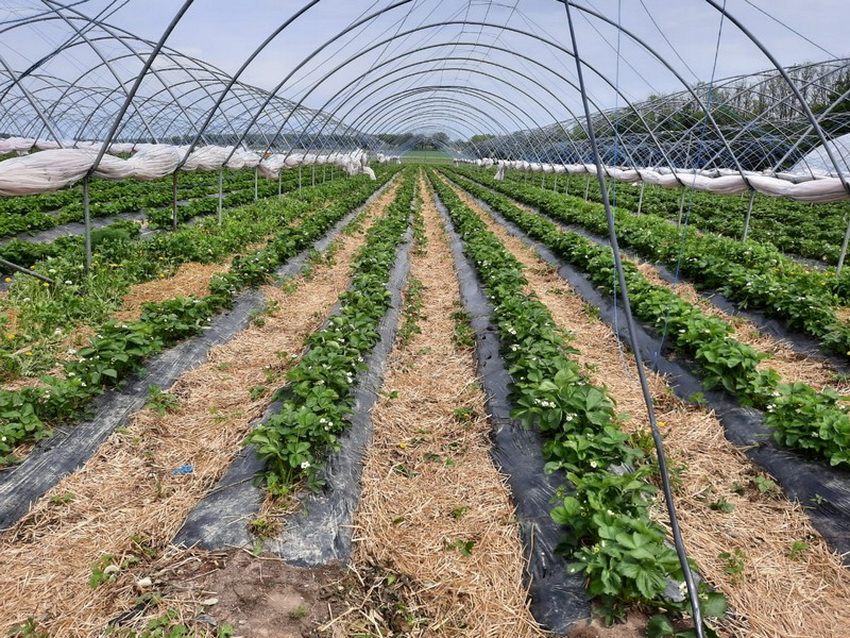 Суницю садову на підприємстві вирощують за новою технологією - у тунелях. Рослини висаджують не «шахматкою», а на високу гряду. Так квітконоси ростуть активніше, відповідно, в результаті виходить більша кількість ягід. Така форма посіву дозволяє ягоді не лягати на землю і вона встигає дозріти. Всі саджанці накриваються плівкою для захисту від сонячних опіків і опадів. Плантація знаходиться під крапельним зрошенням. У господарстві «Тріада-МК» розраховують на врожайність до 20 т/га, тоді як при традиційній схемі посіву збирали 10-12 т/га. Перший урожай з посадок за новою технологією зібрали в 2019 р.