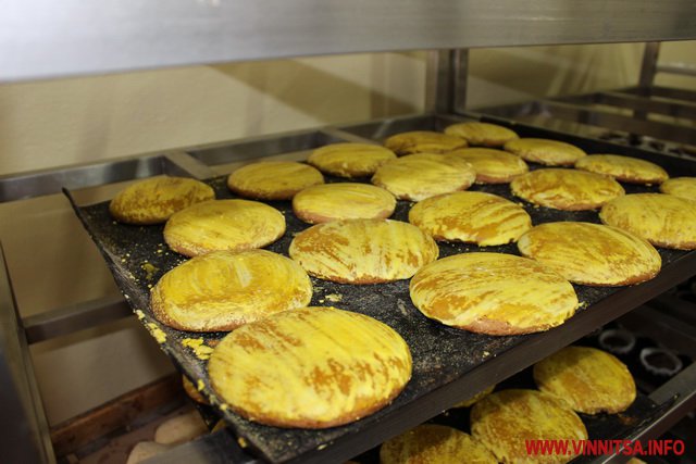 Завідувач кондитерського цеху Ольга Іванова, розповіла, що новорічне медове печиво, готують з натуральних продуктів. Процес в цеху починається із замішування тіста і закінчується пакуванням готової продукції.