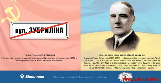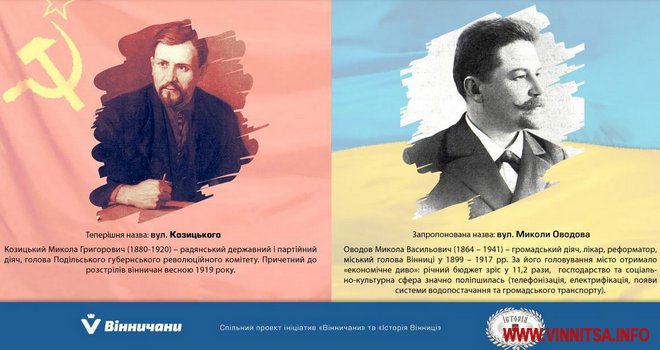 Для прикладу, раніше ми писали, як і чому перейменують вулиці 12 грудня, Волочаївську і Володарського, а також, де і чому у Вінниці з’являться вулиці Курбаса, Івасюка і Свидницького. Ну і, звичайно, де у місті позбудуться «червоних» військових.