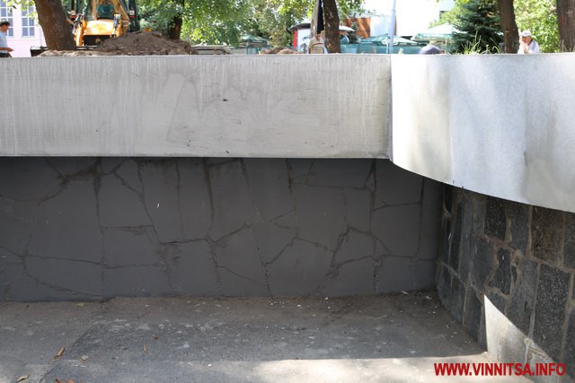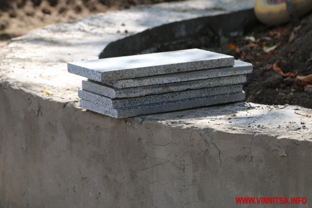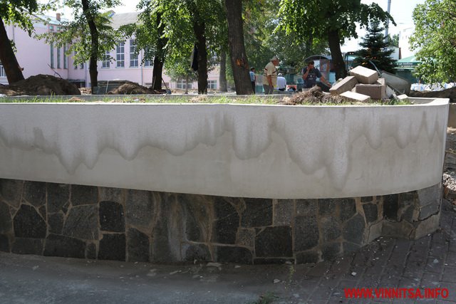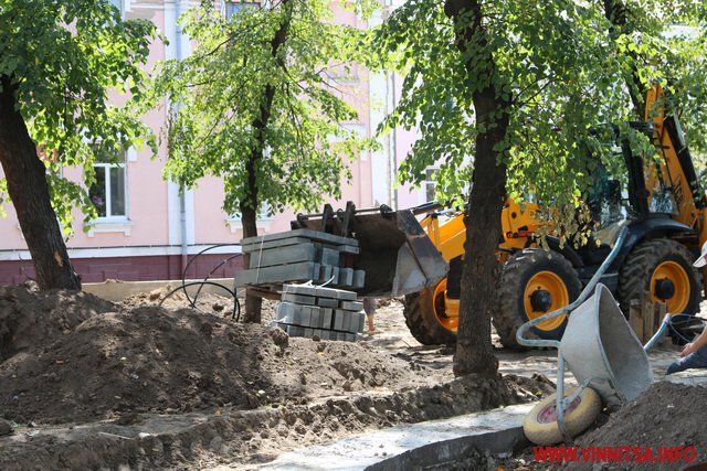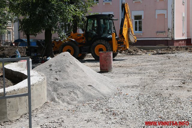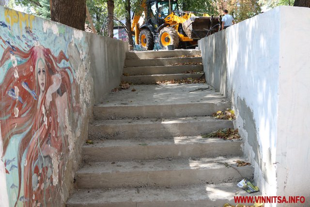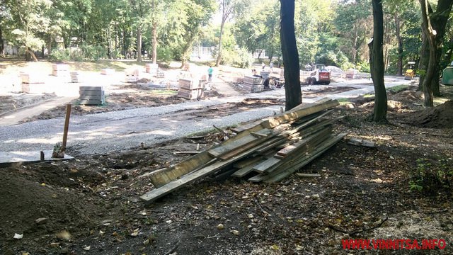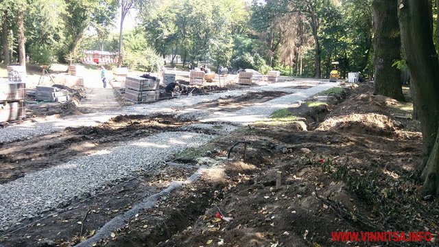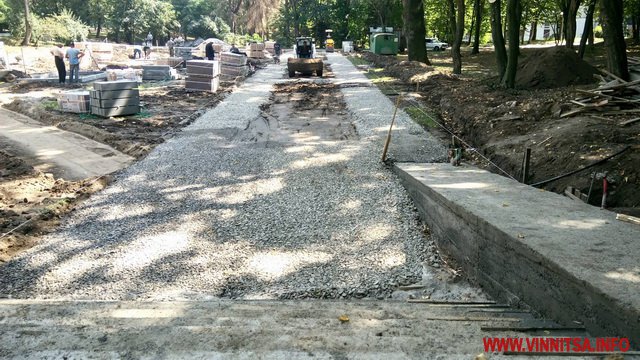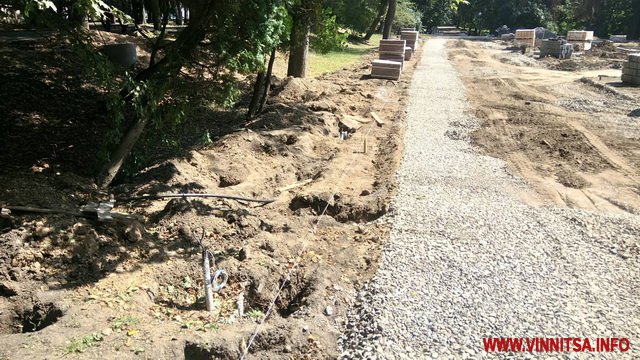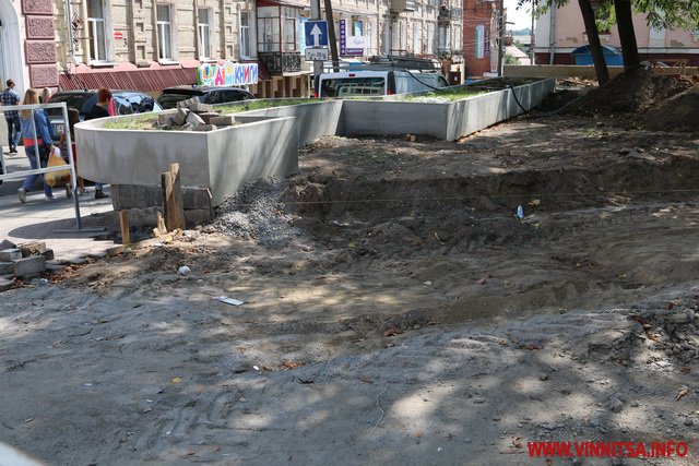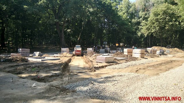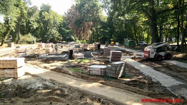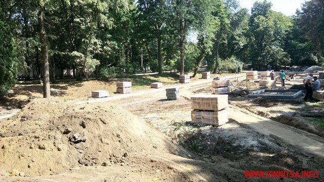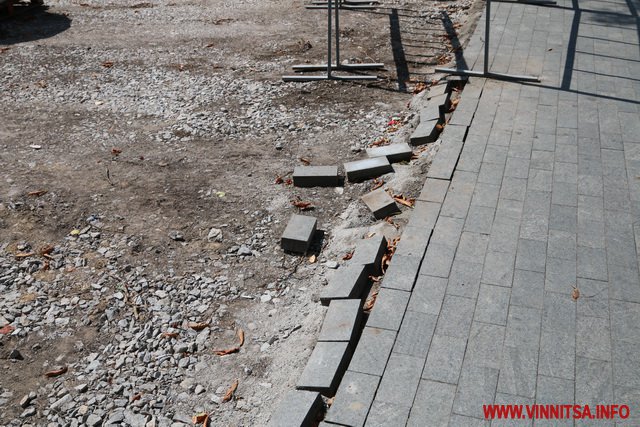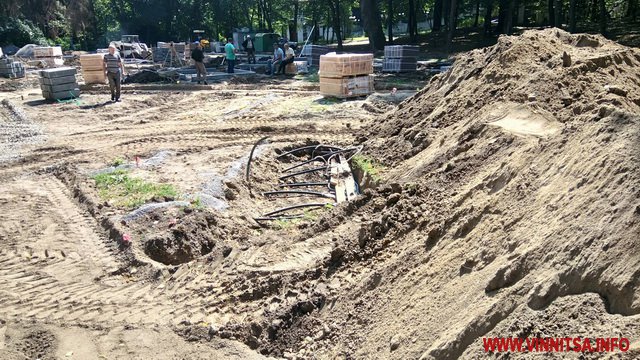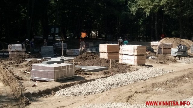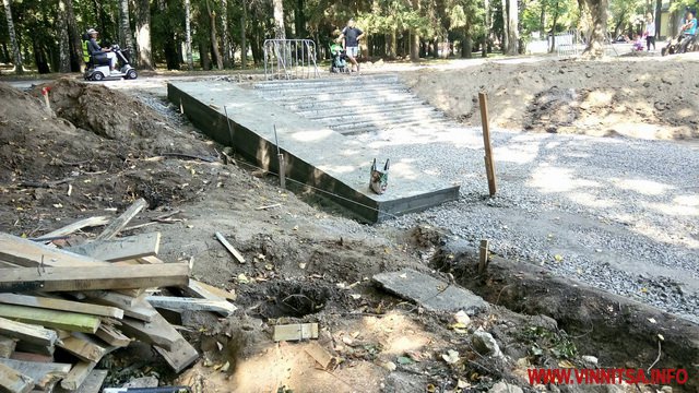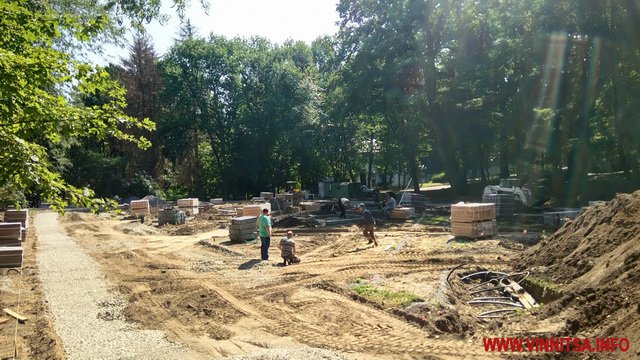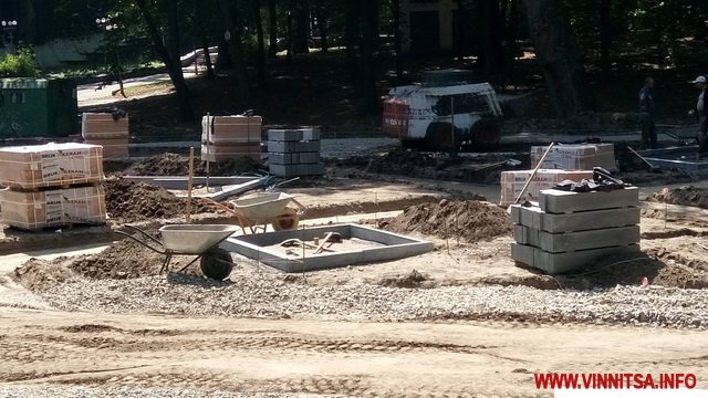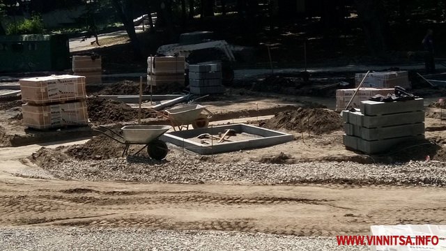 Зараз на будiвельному майданчику вже демонтували повнiстю верхнiй шар покриття, проводять комунiкацiї. Пiд майбутнi мiнi об’єкти «Мiнi Вiнницi» облаштовують бордюри. Ранiше тут вже демонтували лавочки i бiлi арки, на яких пари крiпили замки з романтичними написами. Забрали також пам’ятник з серцям.