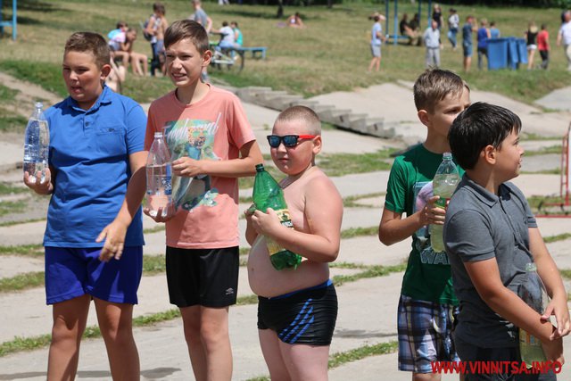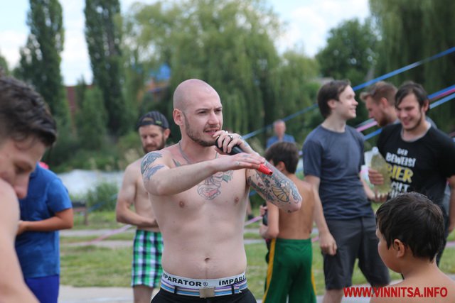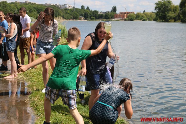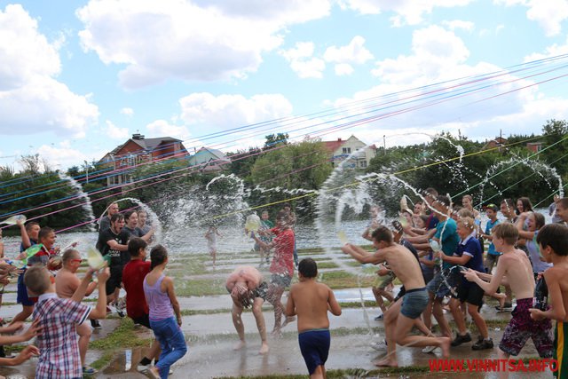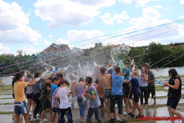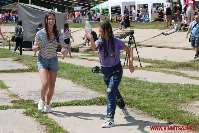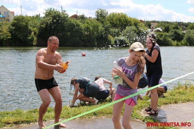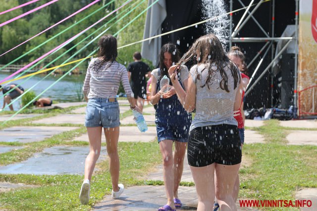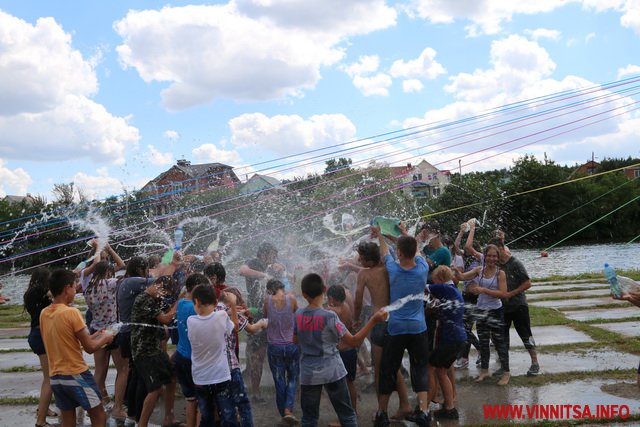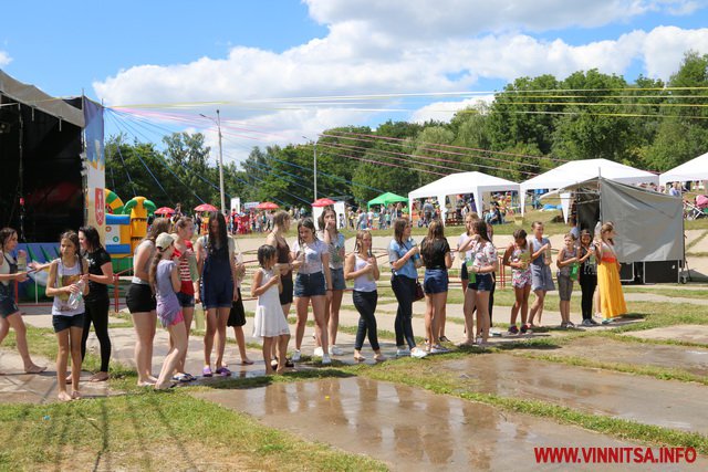 На центральнiй площi перед сценою проходять водянi батли. Учасники набирають воду з рiчки в пляшки та обливають один одного.