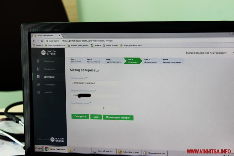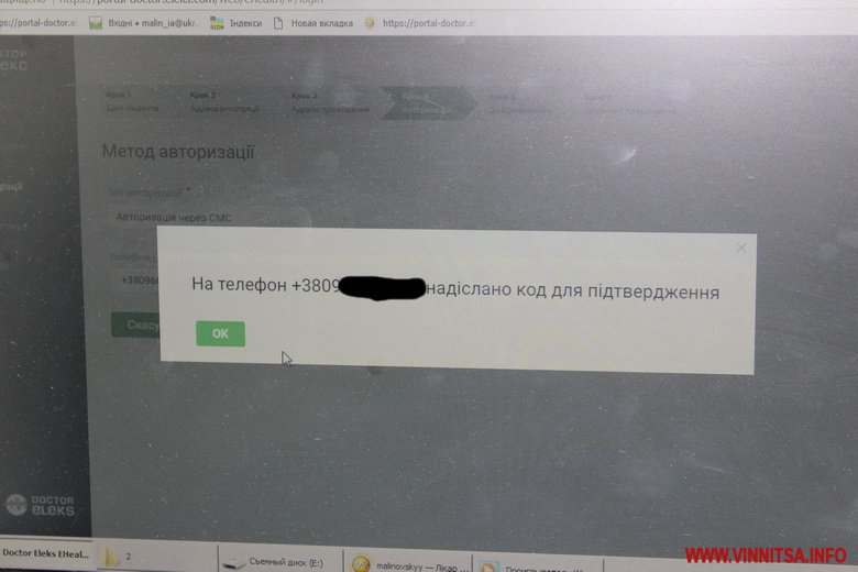 Далі проводиться авторизація. На номер пацієнта приходить SMS-повідомлення з кодом, який потрібно ввести у відповідну стрічку.