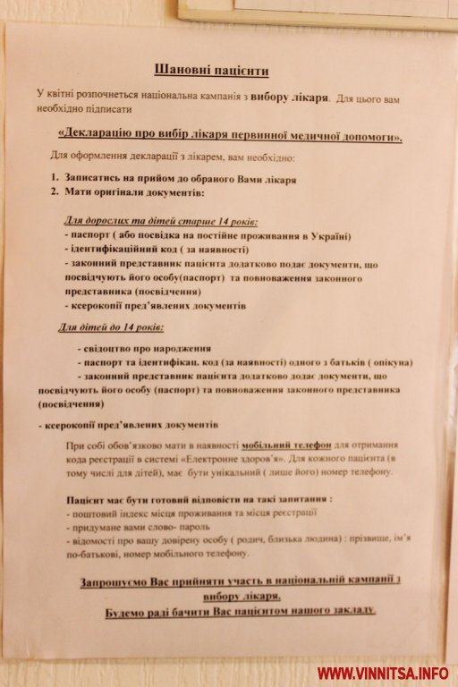 З 1 квітня вінничани почали підписувати декларації з обраним сімейним лікарем. Журналіст Вiнниця.info прийшов на прийом до лікаря, у «Центр первинної медико-санітарної допомоги №2», коли відбувався процес заповнення декларацій.