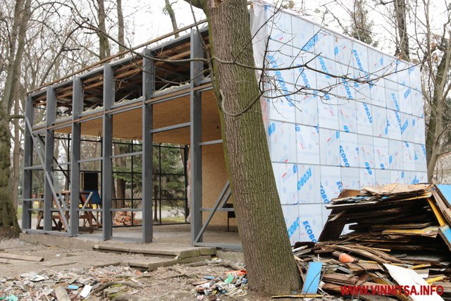 У вінницькому Центральному парку завершують реконструкцію шашко-шахового клубу. Станом на 24 травня готовий каркас, встановлено вікна та облаштовано систему водопостачання.